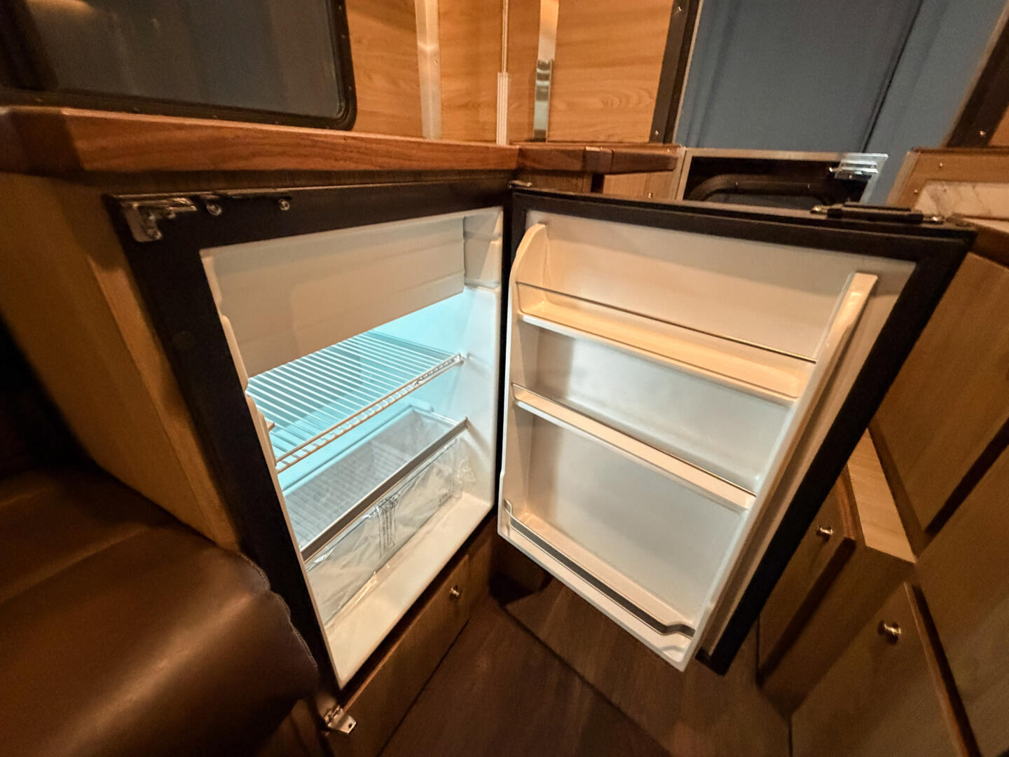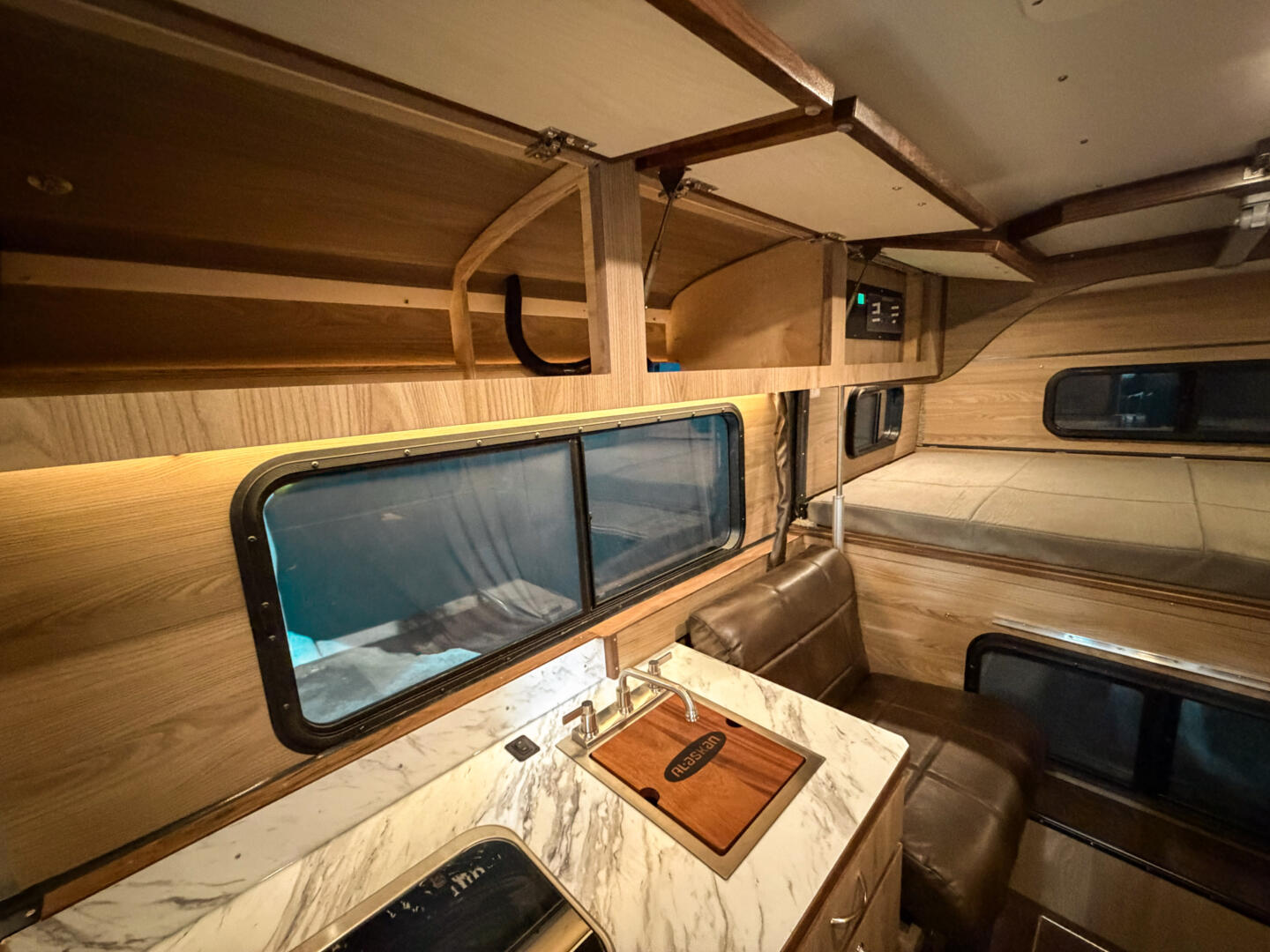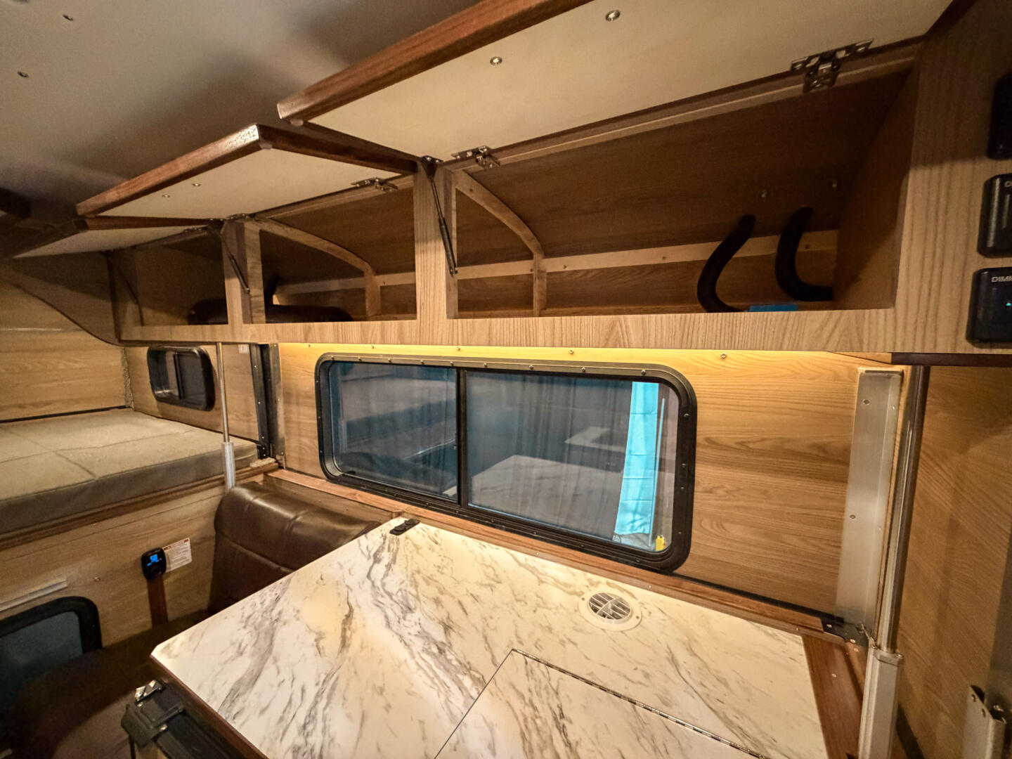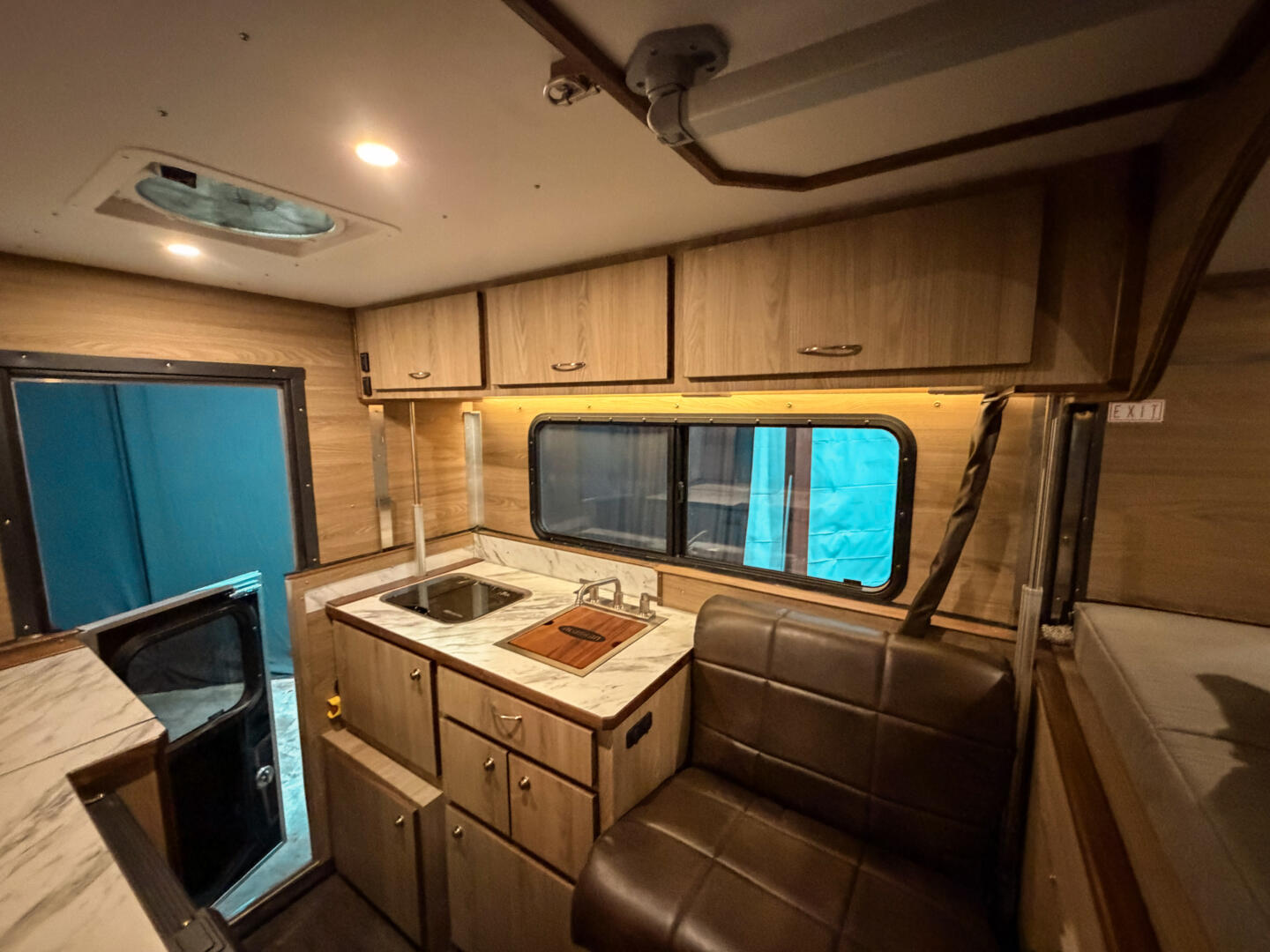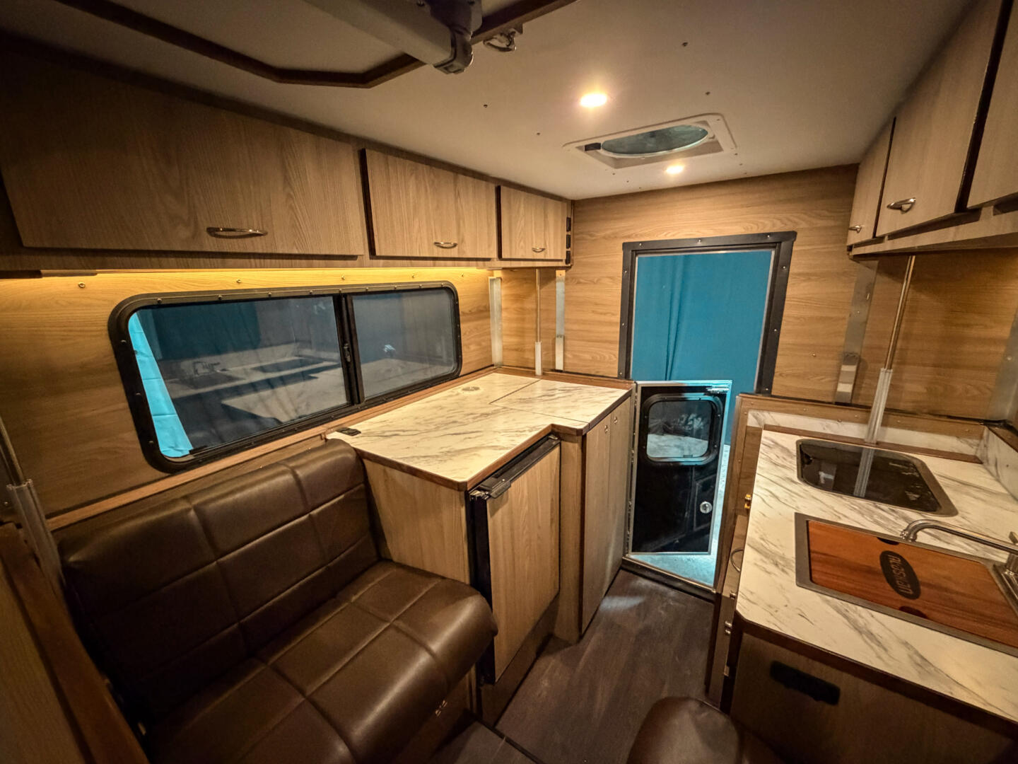 Our 650 SI is thoughtfully equipped so you can hit the road without a wait list! You get a powerful house system with two 162Ah battery, roof-mounted solar, DC-to-DC charging, USB ports for quick device top-offs, and a 4-gallon hot water heater for comfortable showers after long days outside. Inside, the 650 SI packs in a practical galley, 3.5 cu/ft fridge, forced-air furnace, and a roomy dinette, all wrapped in Alaskan’s durable, hand-crafted cabinetry.