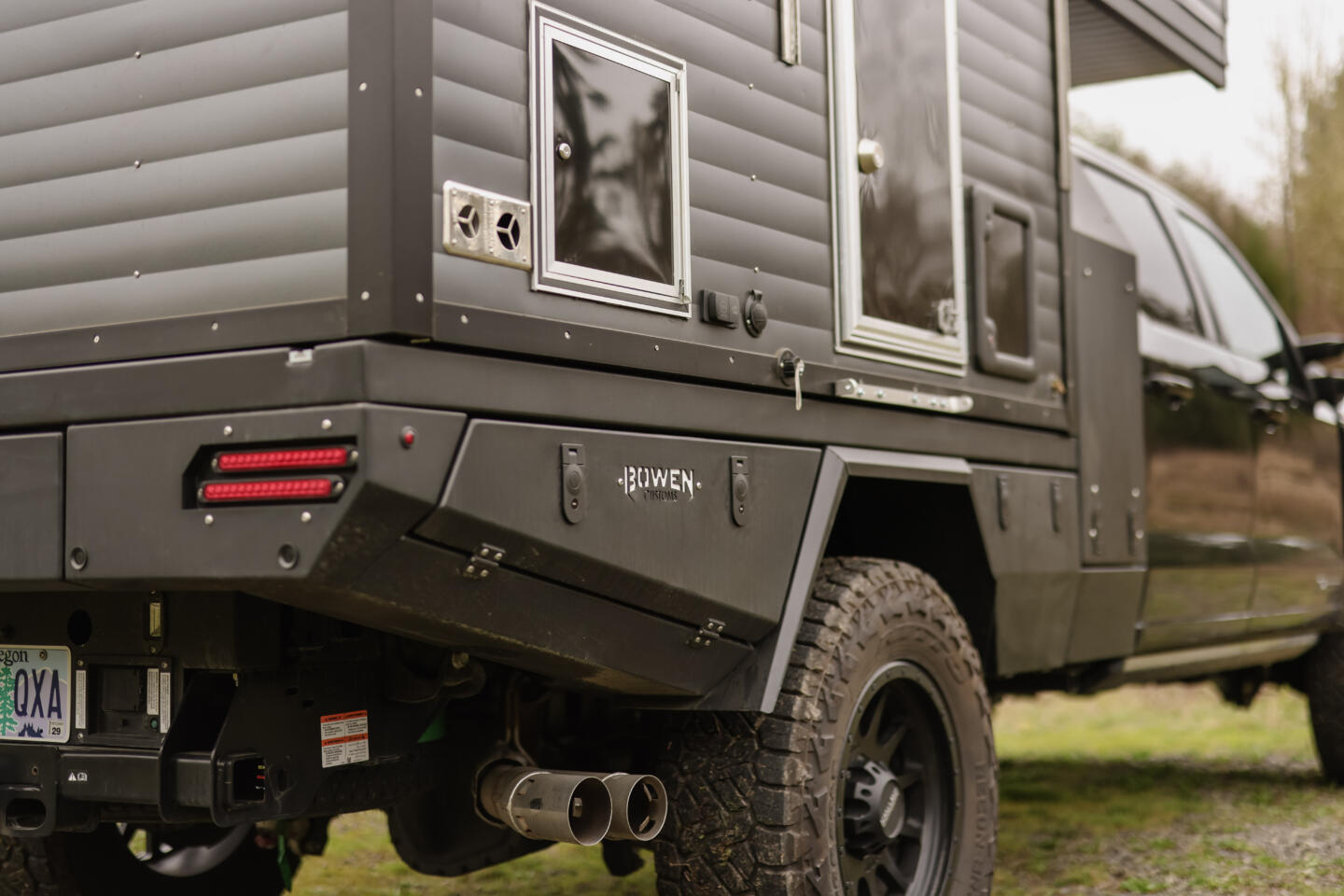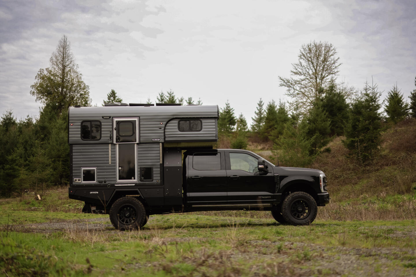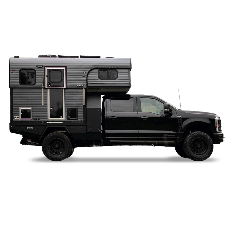 Underneath, the Bowen Customs flatbed is purpose-built for campers: low deck height for a better center of gravity, integrated storage, and a clean interface with the F-350 chassis for serious payload and off-road capability. It turns the truck and camper into one cohesive system instead of a bolt-on afterthought.