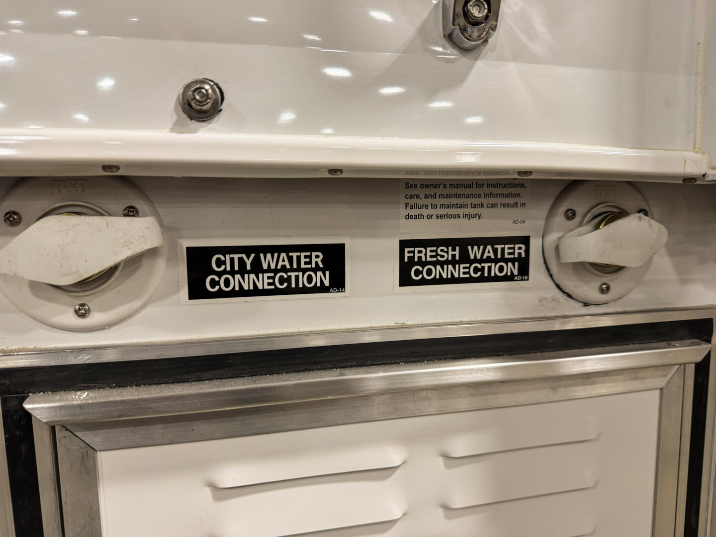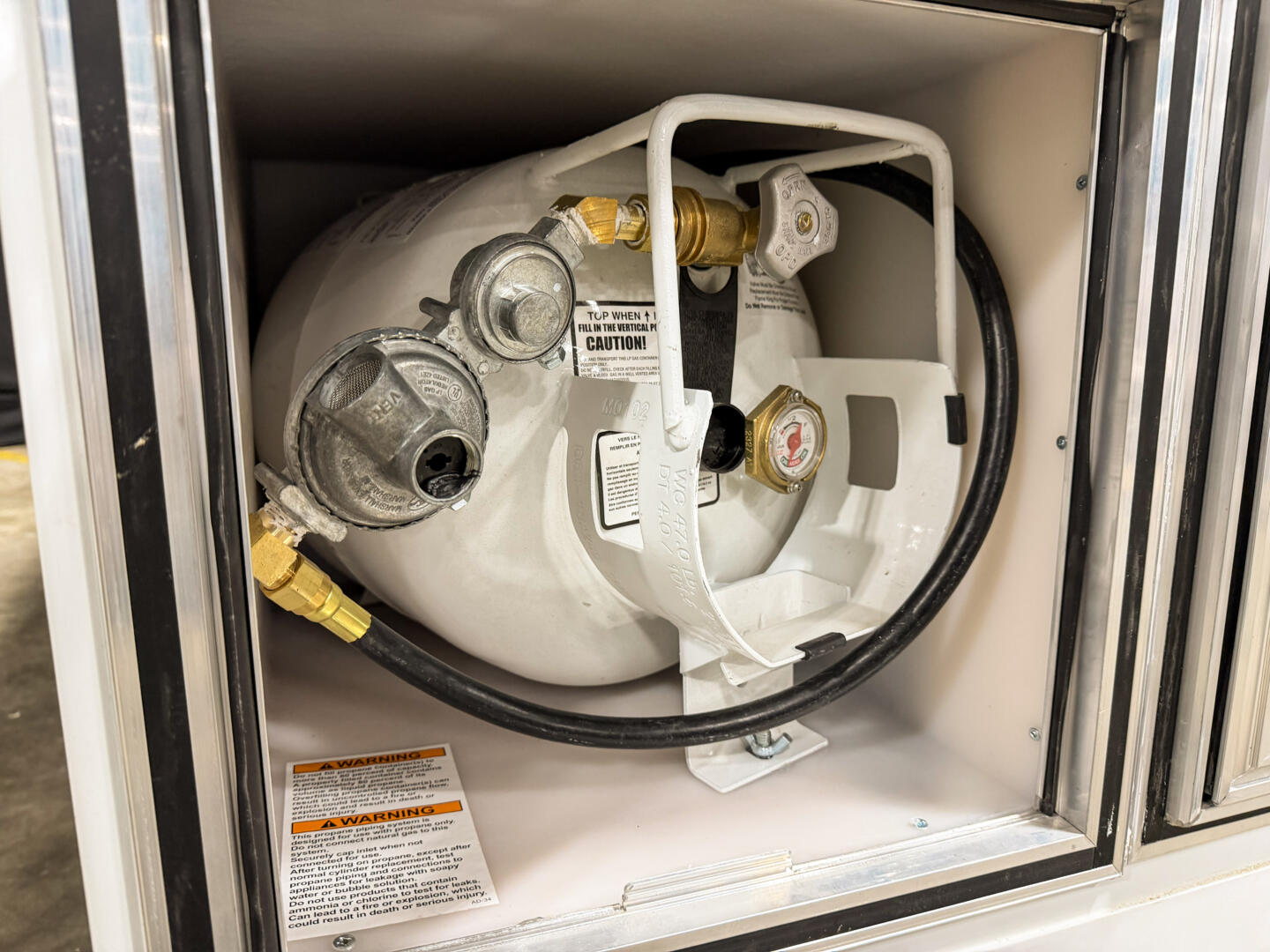 For onboard systems, this 800 SI Classic White is set up to support off-grid travel. It carries 27 gallons of fresh water, giving you a solid buffer for dishes, basic rinses, and short showers between fill-ups. Heat and hot water are on board, so you can enjoy all four seasons and higher elevations without worrying that the camper won’t keep up. The electrical system is built around dual Expion 360 162Ah lithium batteries and twin 200W solar panels, with DC-to-DC charging from the truck, pre-wiring for an inverter and AC, and multiple 12V and USB ports throughout the cabin. That combination gives you a strong foundation for lights, fans, devices, and core systems on longer off-grid stays.