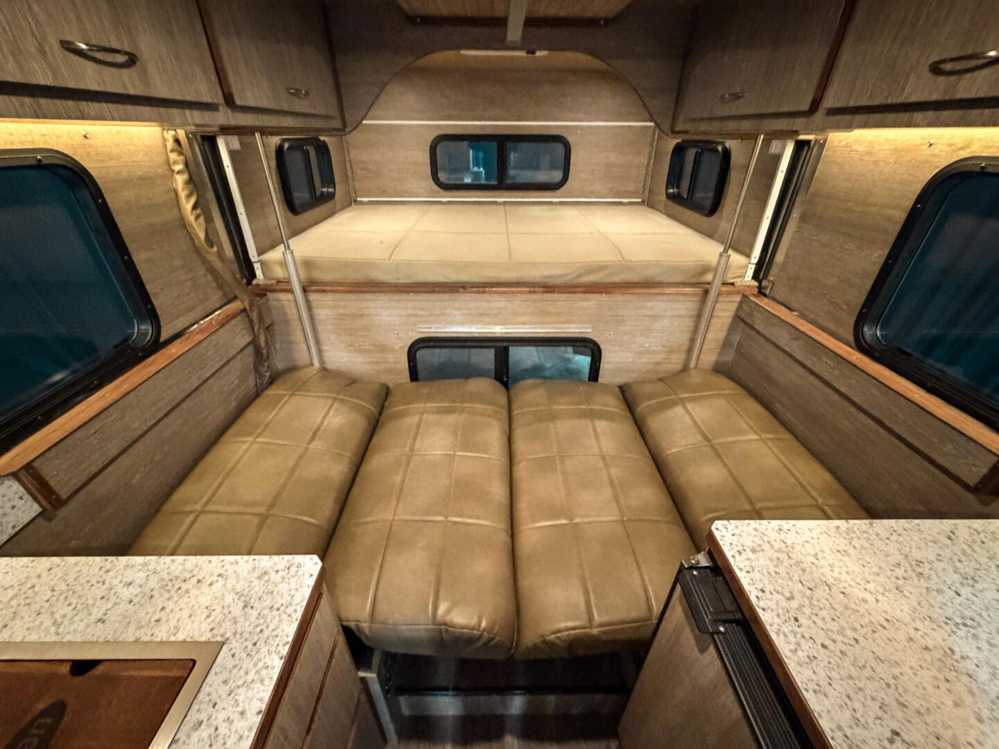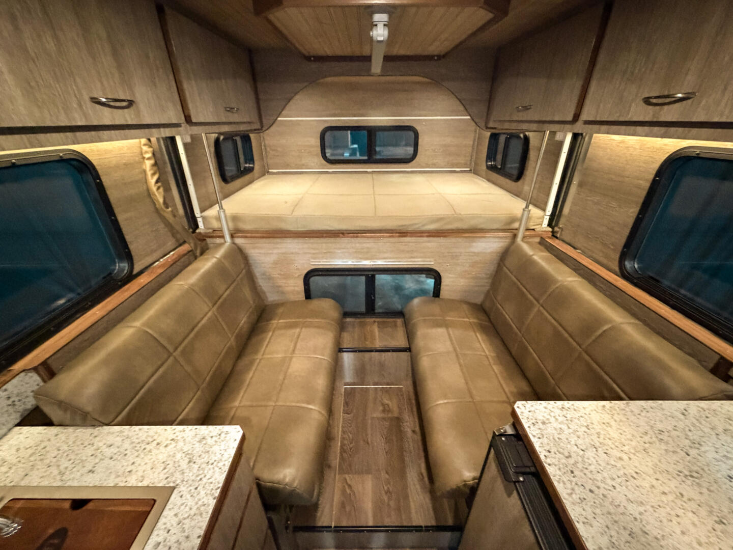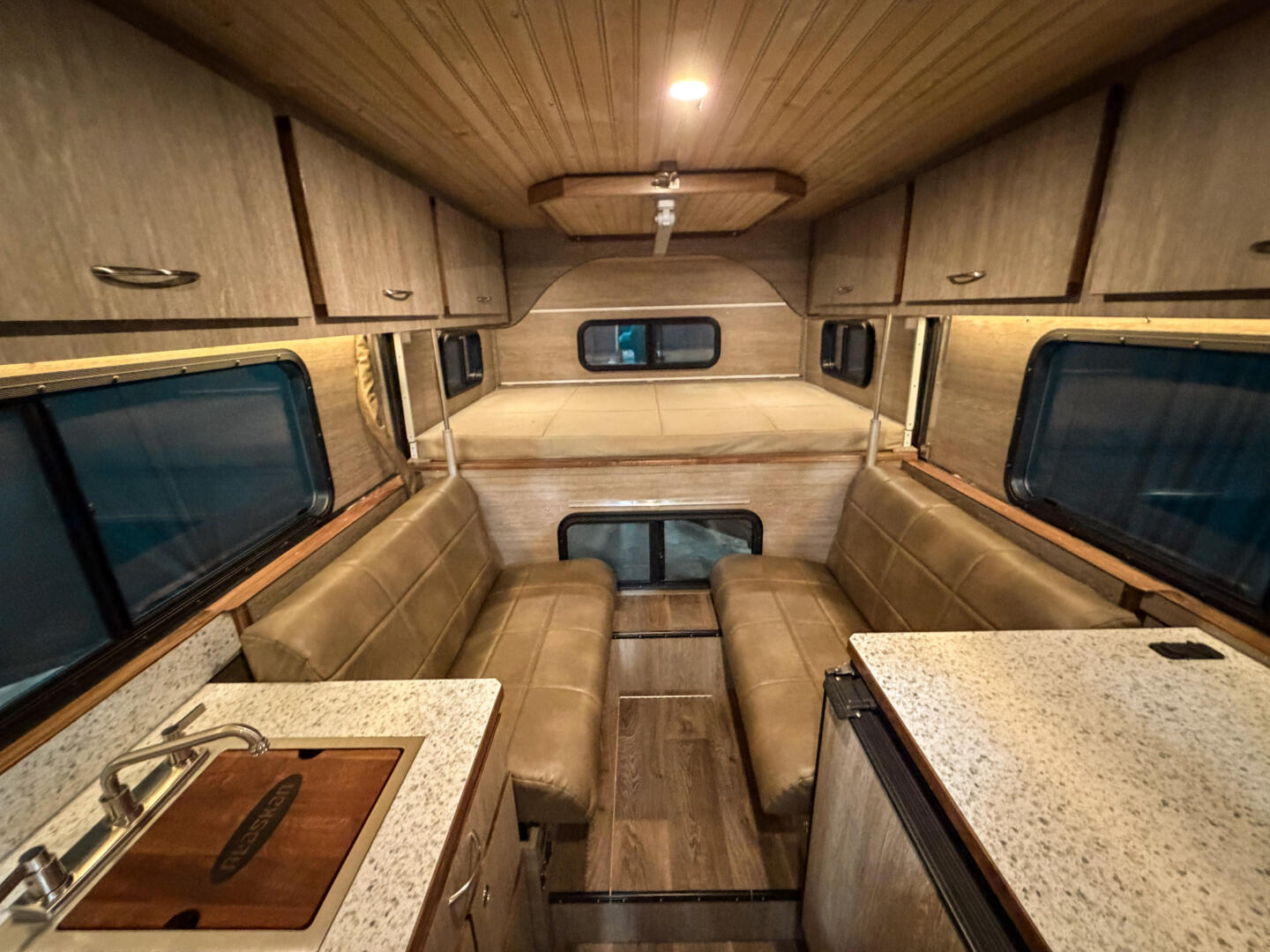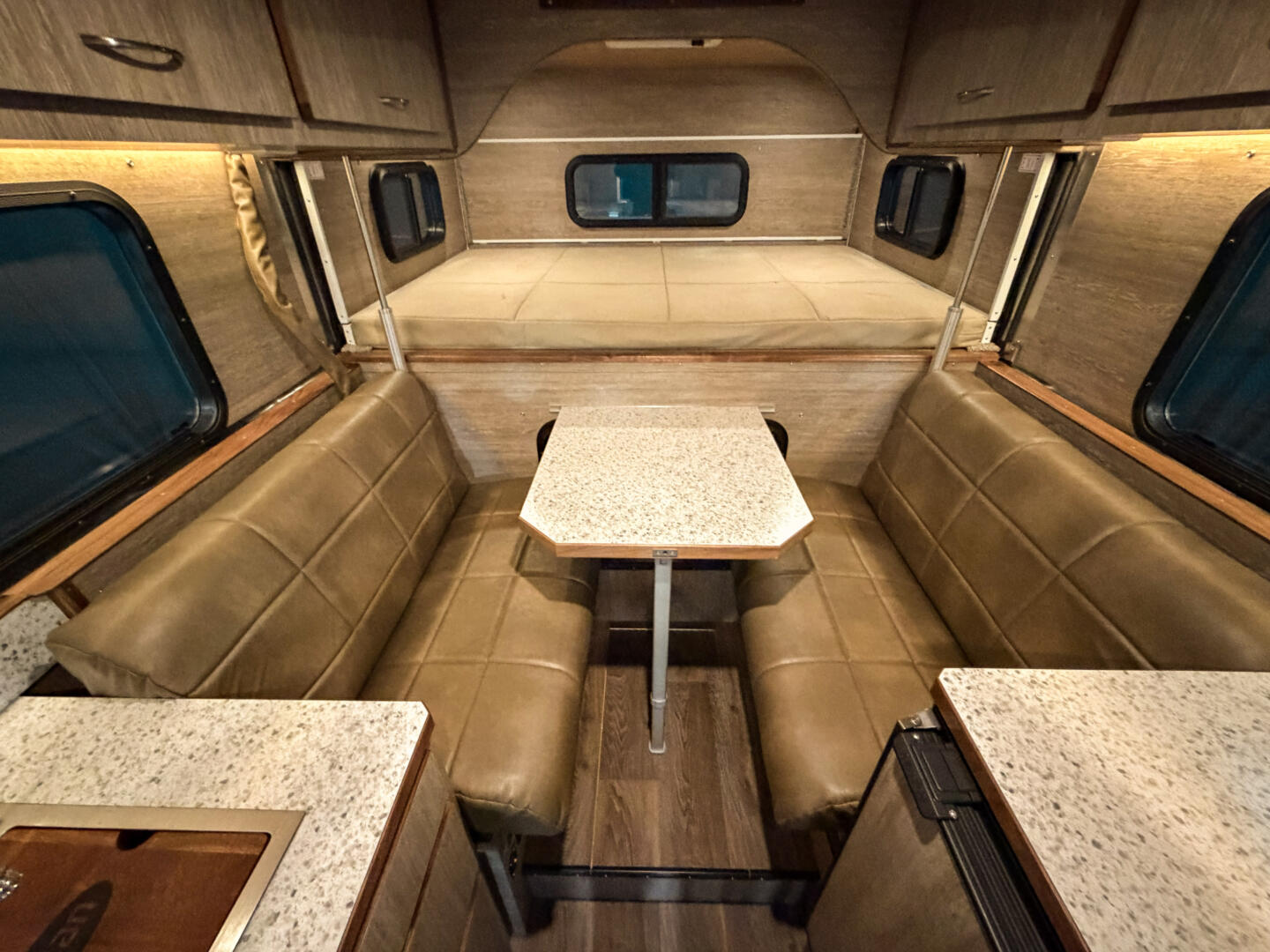 Inside, the 800 SI is designed for those who actually want to enjoy their camper, not just sleep in it. The extended cabover provides a comfortable sleeping area, while the 44″ front dinette offers seating for meals, planning, and downtime, and can convert to additional sleeping when needed. This layout works well for couples, small families, or friends who want flexible space for longer trips without moving up to a much larger RV.