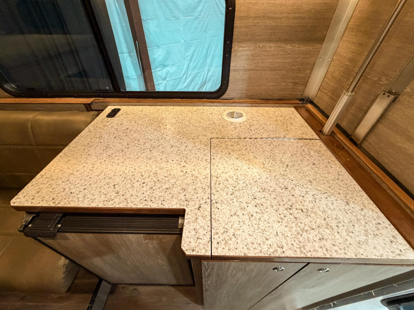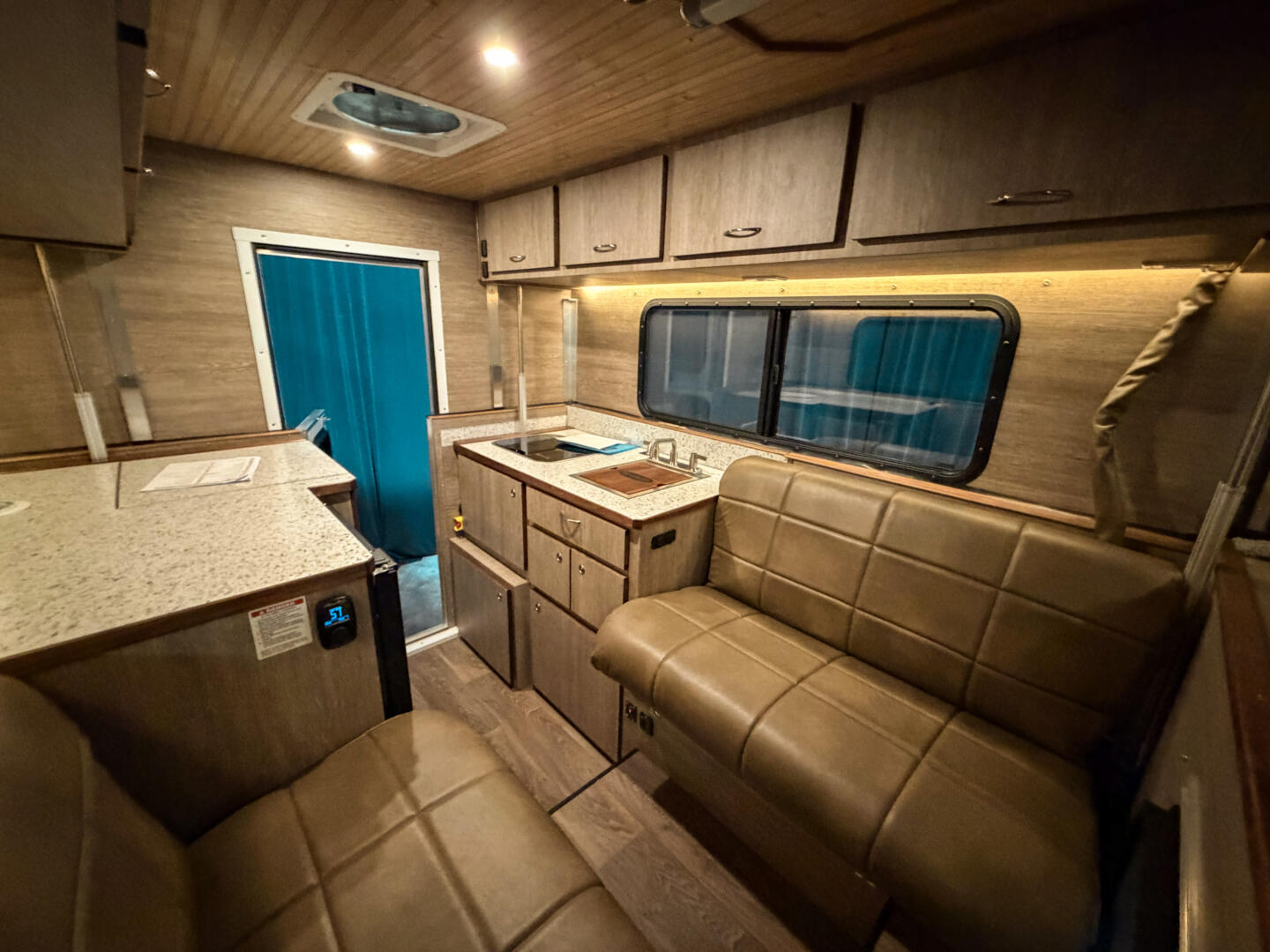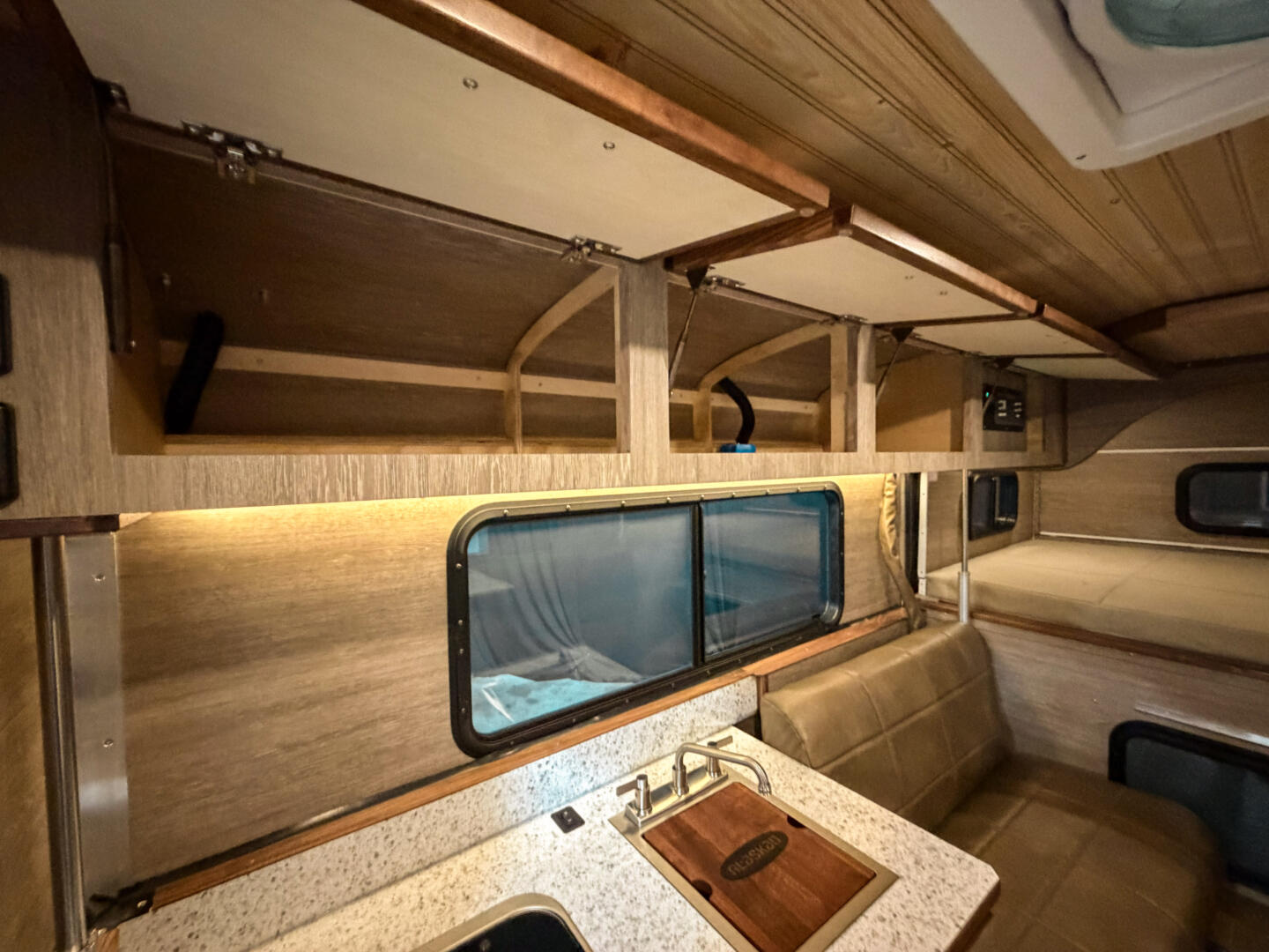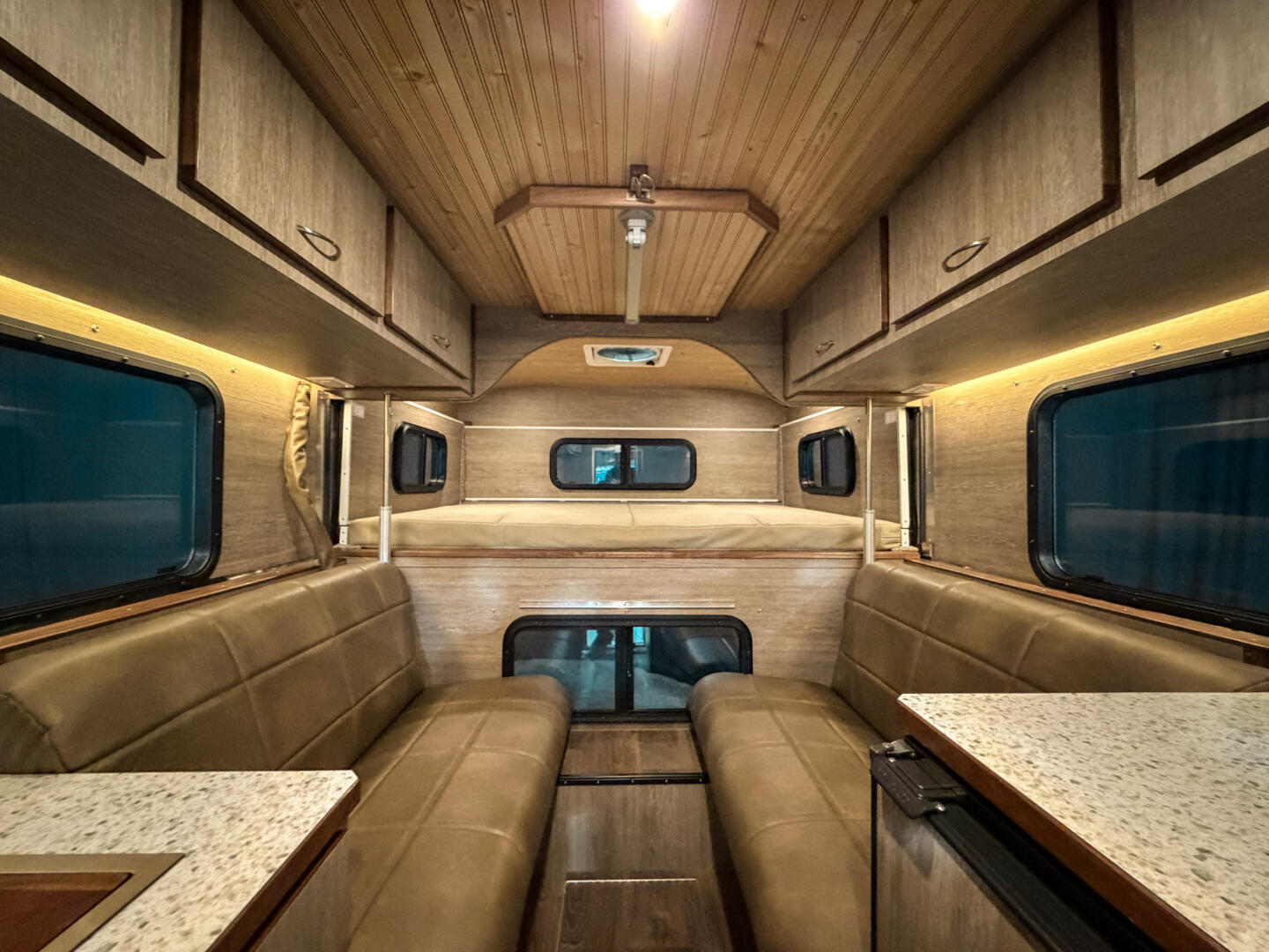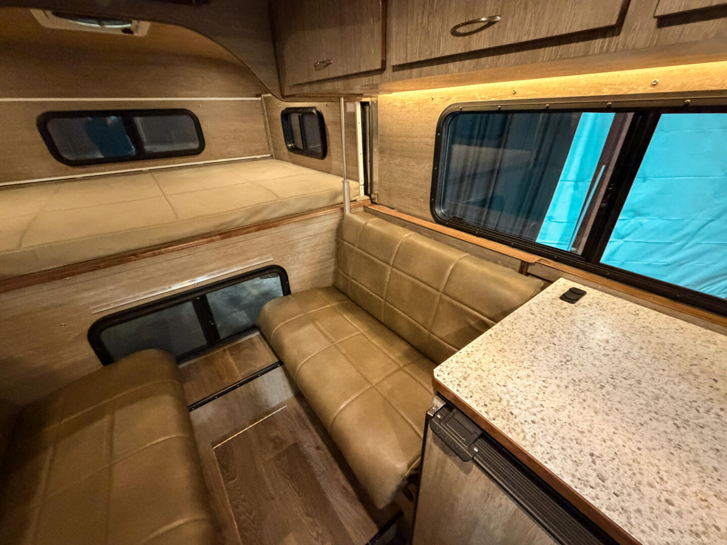 Inside, the 800 SI is designed for those who actually want to enjoy their camper, not just sleep in it. The extended cabover provides a comfortable sleeping area, while the 44″ front dinette offers seating for meals, planning, and downtime, and can convert to additional sleeping when needed. This layout works well for couples, small families, or friends who want flexible space for longer trips without moving up to a much larger RV.